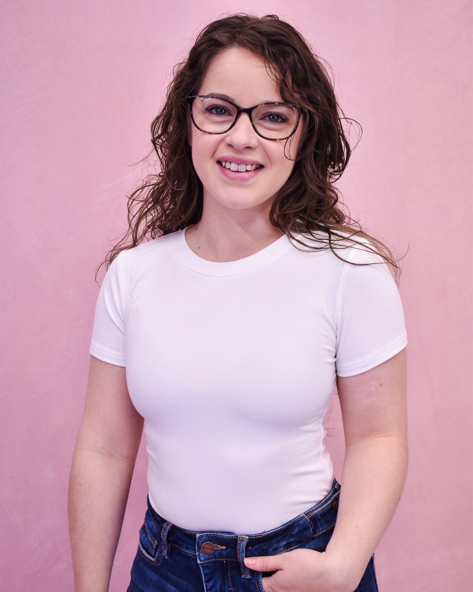 Jessica is wearing a size Medium