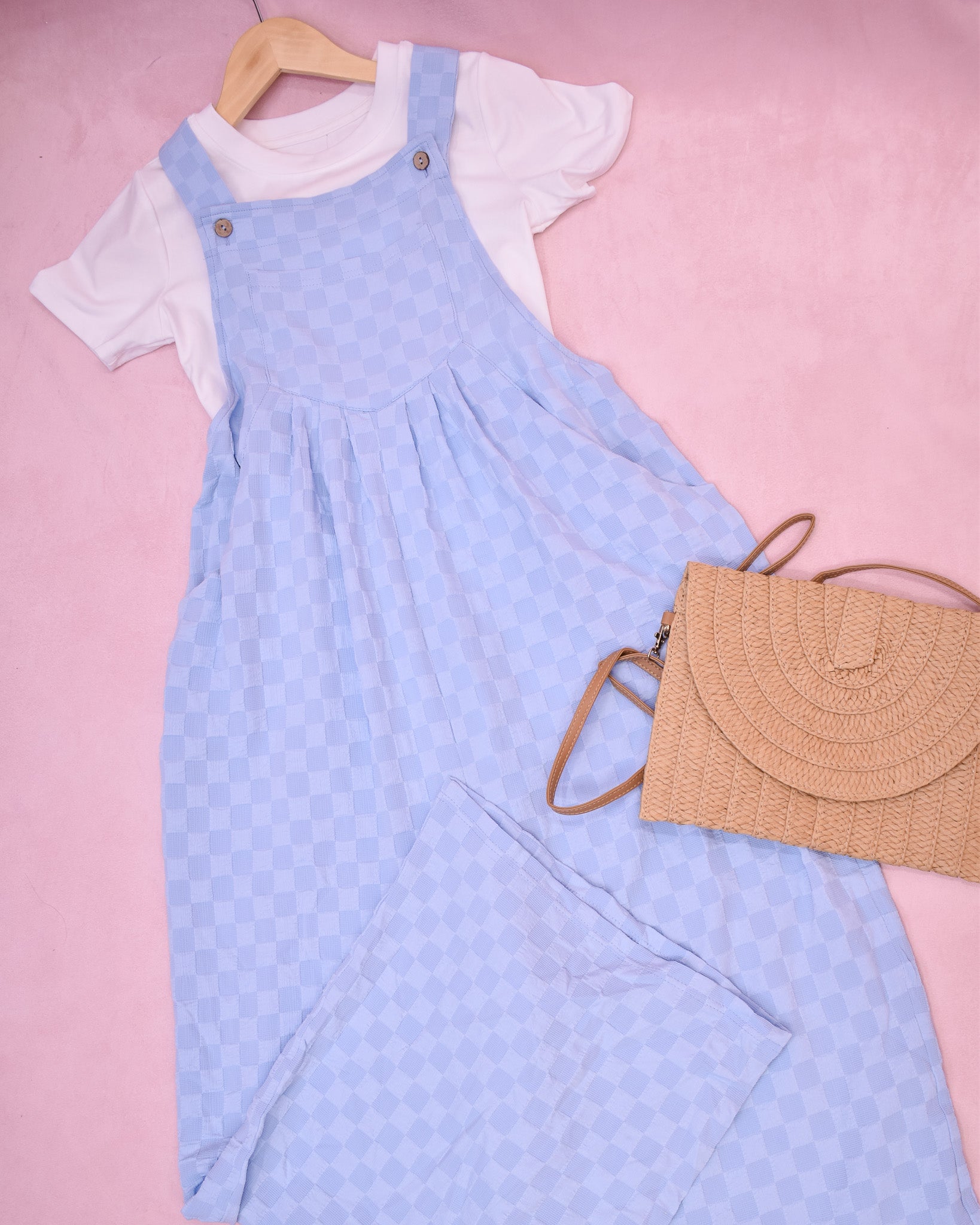 Get ready to turn heads with our Check Me Out Wide Leg Overalls! These overalls are not only trendy and fun, but also versatile, perfect for any summery occasion, whether you're going for a casual or dressy look. Trust us, these cute overalls will definitely make a statement!