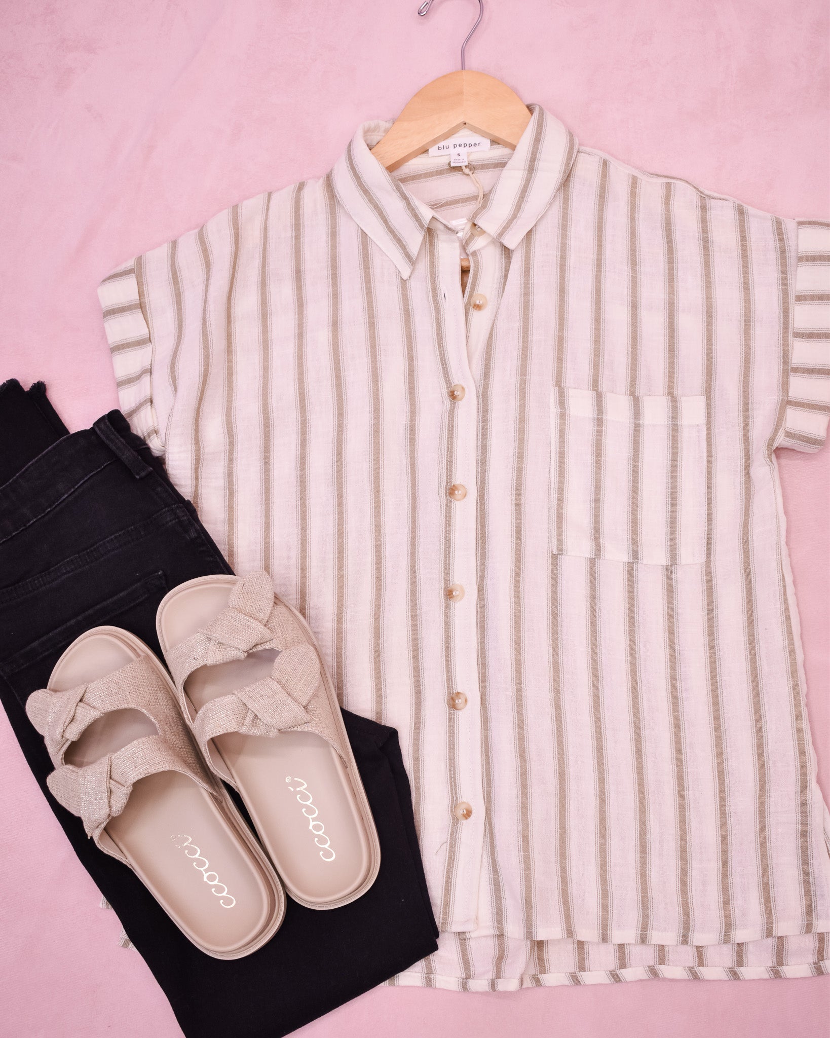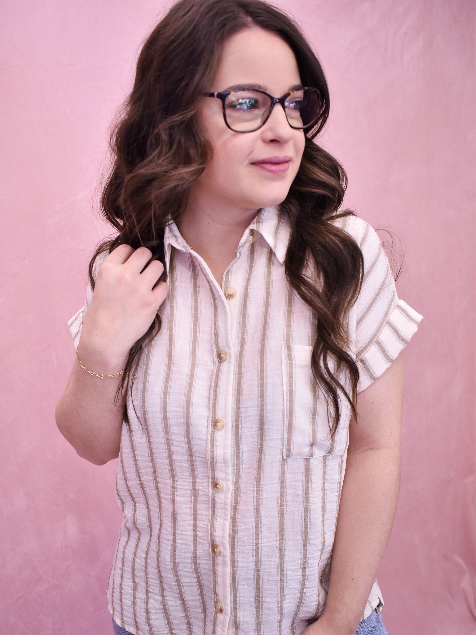 Unleash your inner confidence with our Cherished Smile Stripe Top. This collared short sleeve button down top is a must-have addition to your wardrobe. Made with lightweight woven fabric, it offers comfort and style for any occasion. Elevate your outfit with this timeless piece.