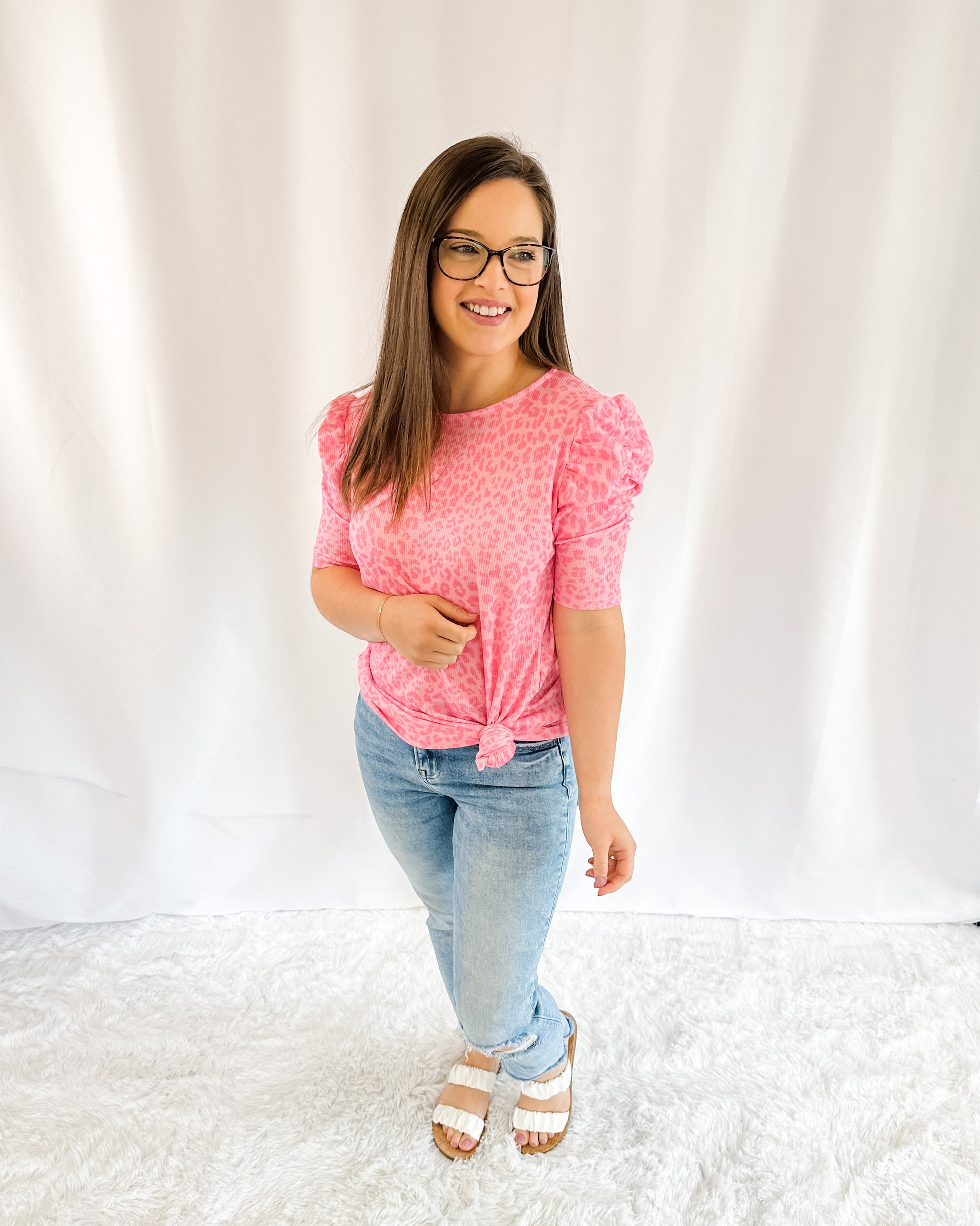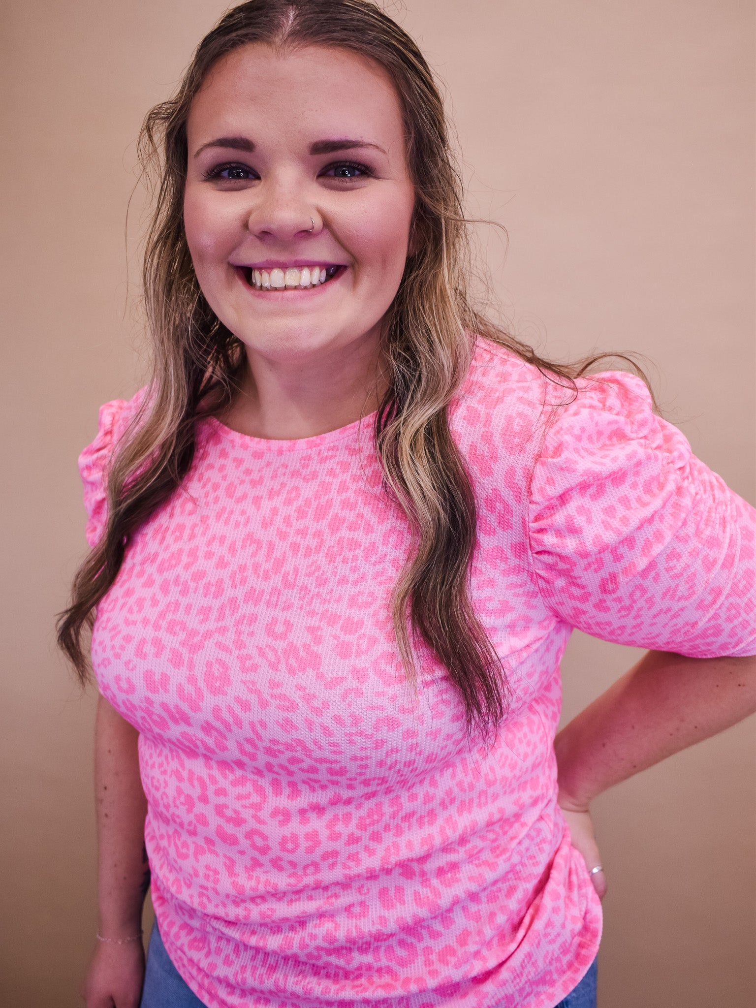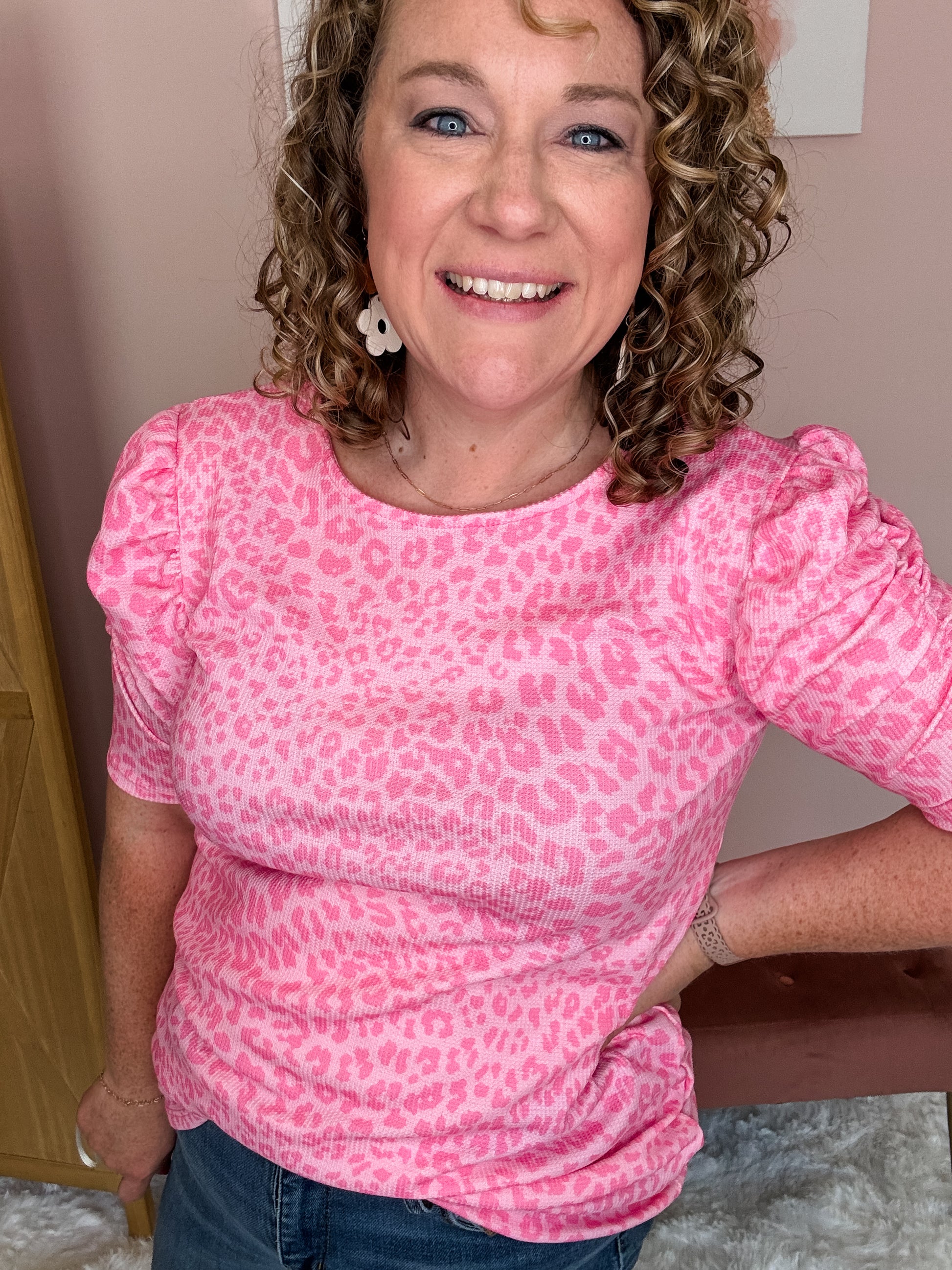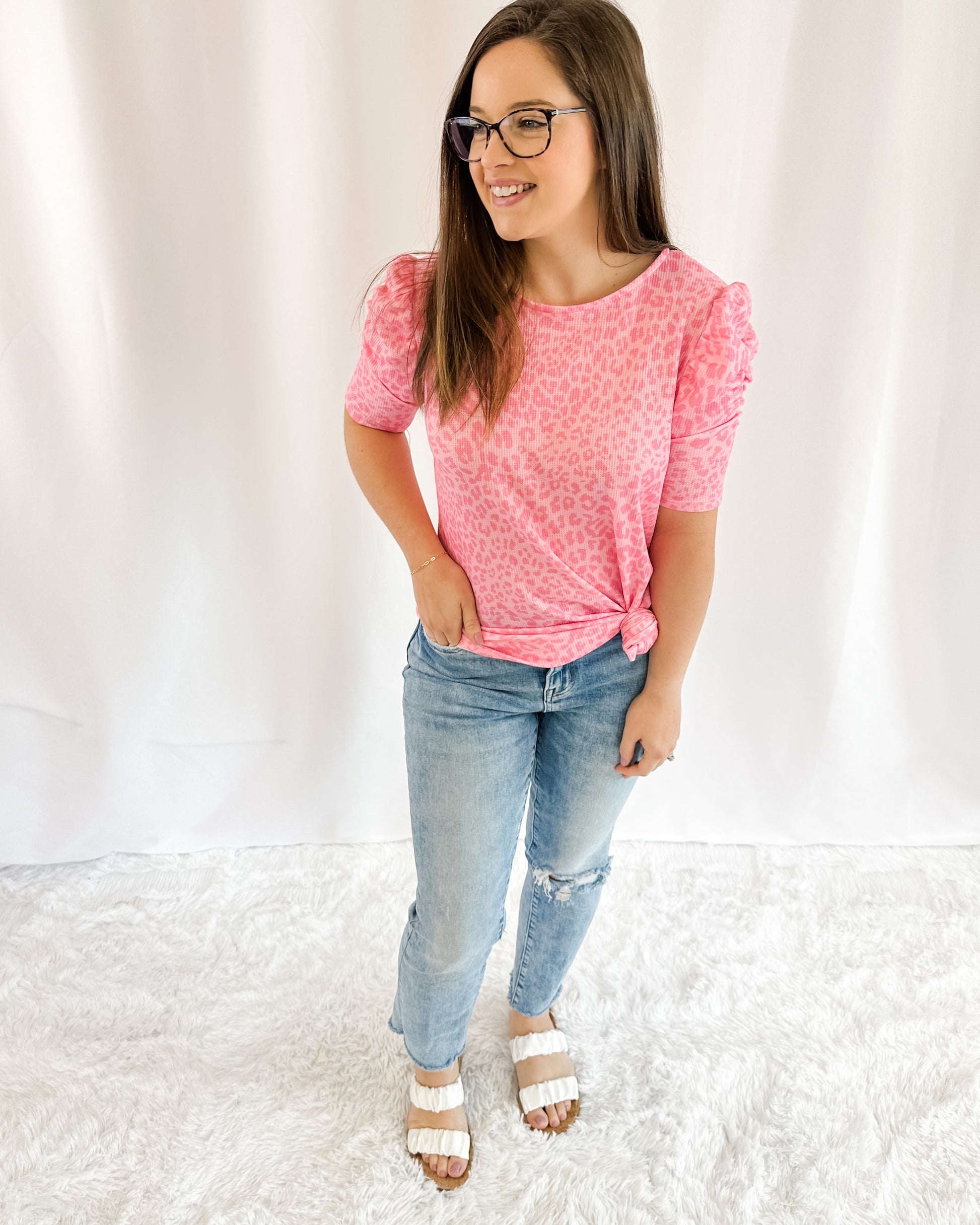 This Crawling To You Animal Print Top is the purrr-fect way to show your wild side! With its ruched short sleeves, round neck, ribbed knit, and wild animal print, you'll be turning heads wherever you go.