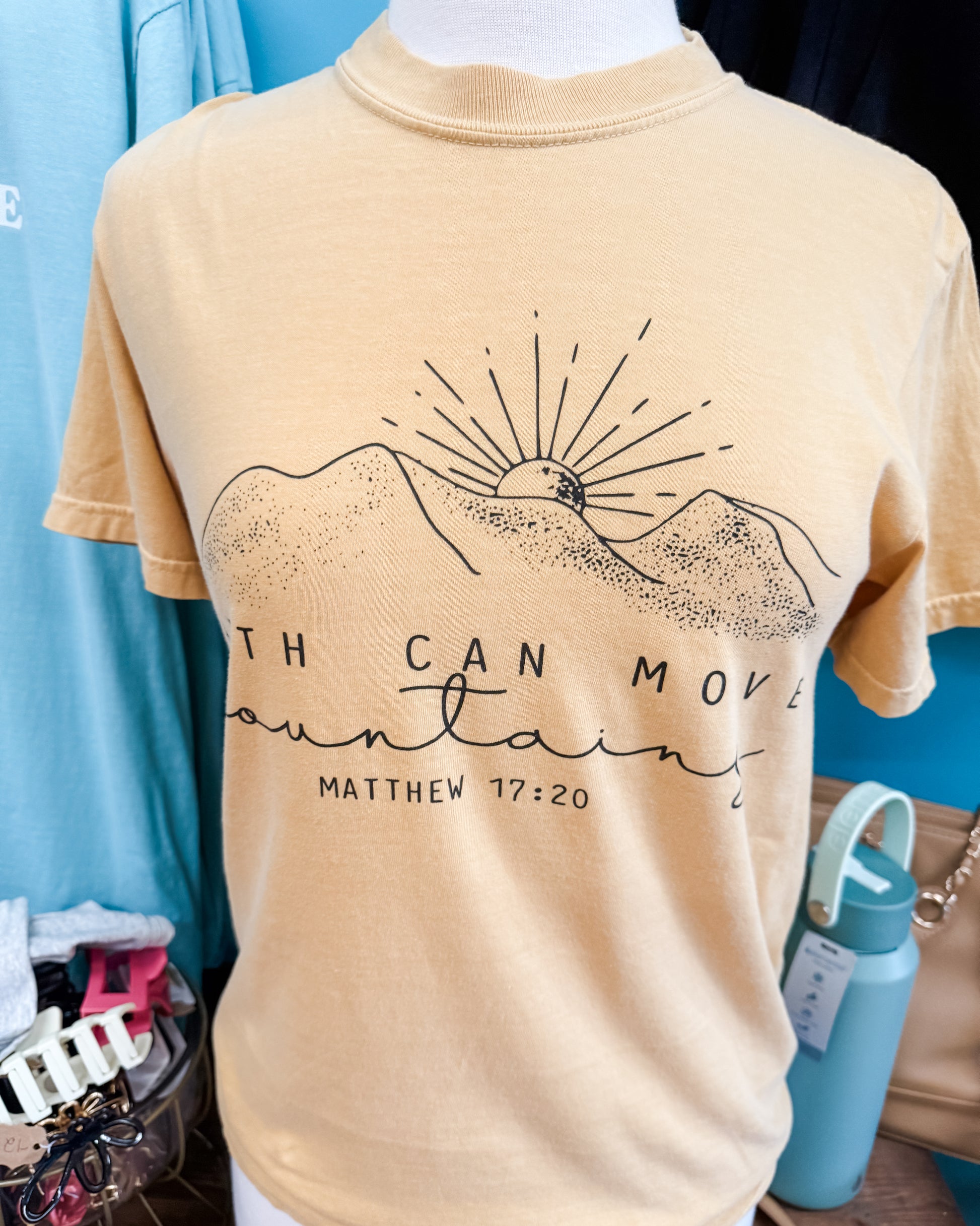 Experience comfort and inspiration with our "Faith Can Move Mountains" graphic tee. Crafted for a soft, breathable fit, this tee keeps you comfortable all day while boldly expressing your belief in the power of faith. Perfect for casual wear or layering, it’s a meaningful addition to your wardrobe that motivates and uplifts.