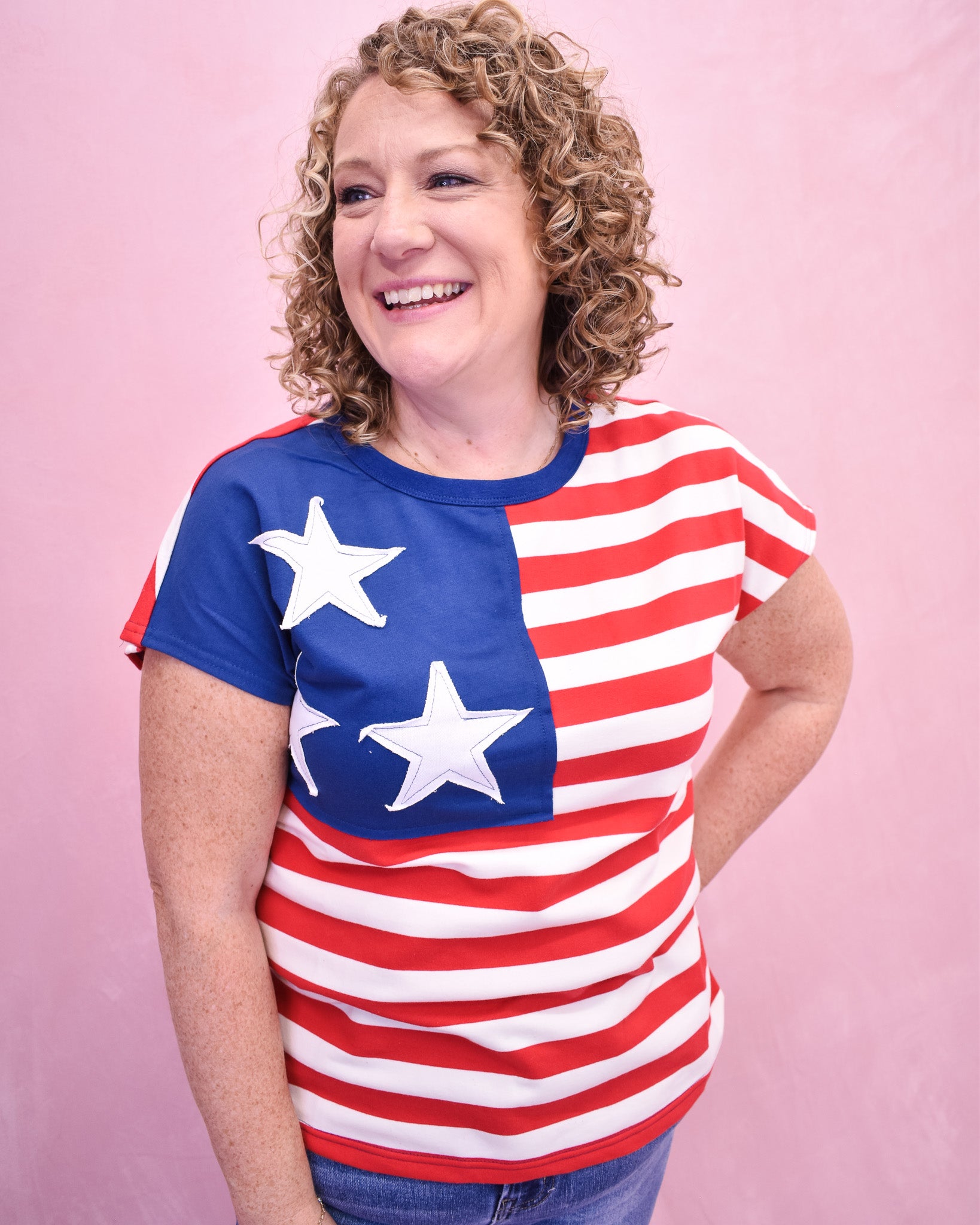 Experience true freedom in our Feels Like Freedom Detailed Top! Made with soft French terry fabric, this top is perfect for celebrating the Fourth of July with its patriotic theme. Show off your American pride in style.