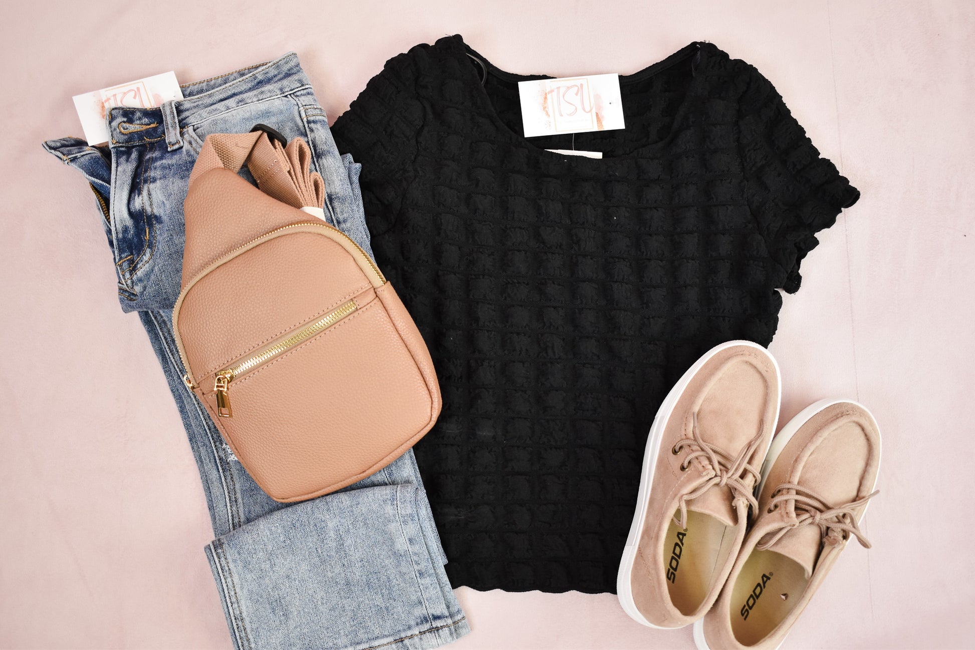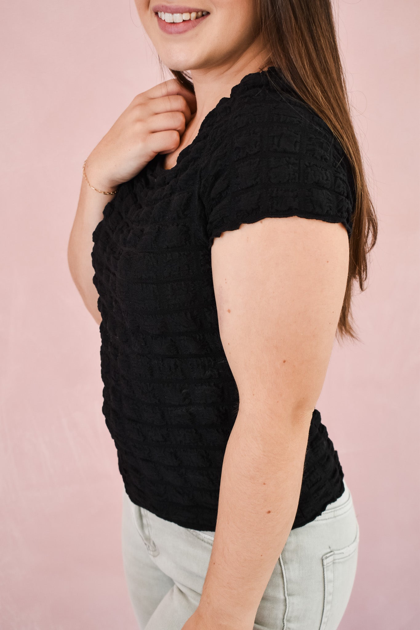 Channel your inner wild child with this Free As The Wind Bubble Top. Its short sleeve, crop fit, and bubble design add a playful flair to any ensemble. It's the perfect piece for some fresh air and free-spirited fun!
