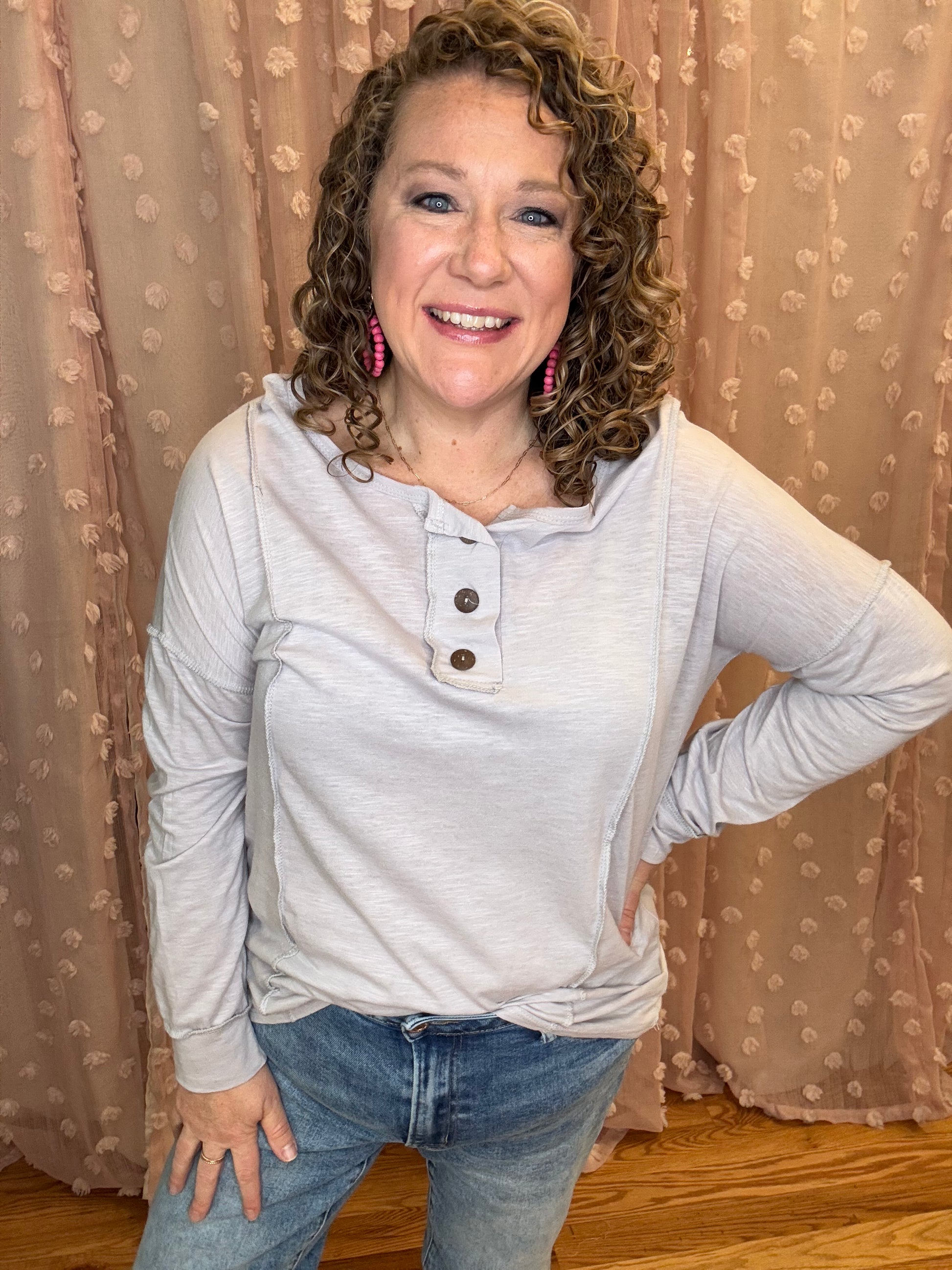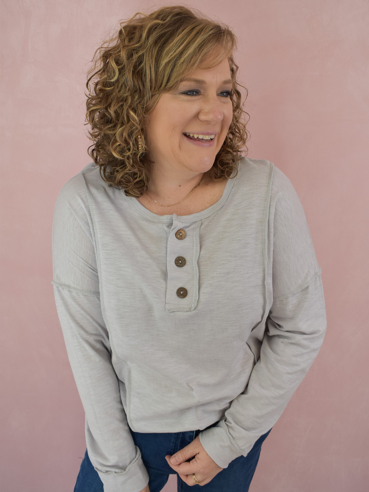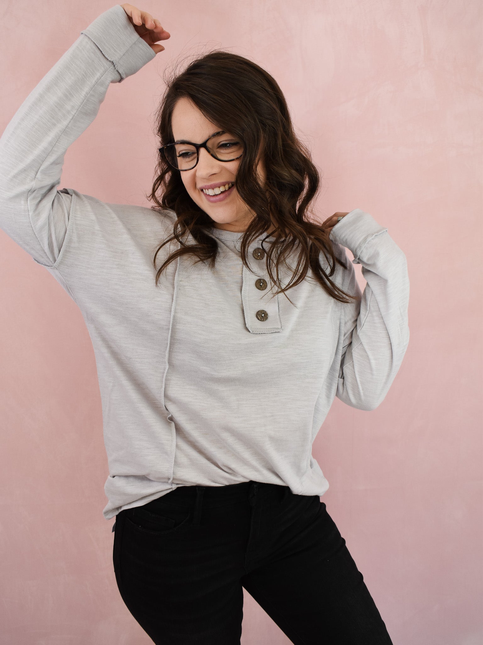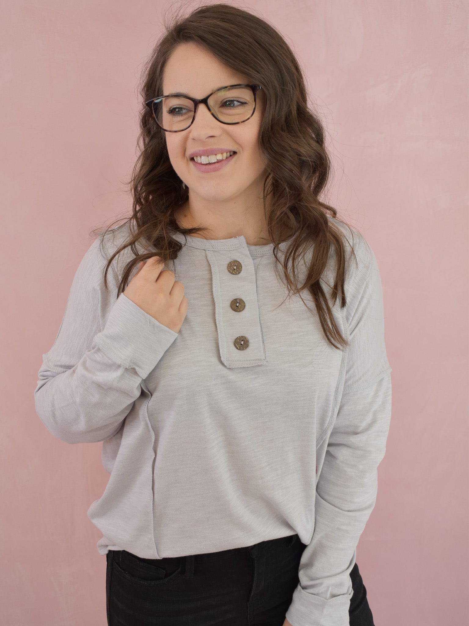 Soft knit meets drop shoulder and top stitch detailing in our Just Tell Me Button Front Top. Feel cozy and stylish in this playful and quirky piece, perfect for any laid-back and fun-loving individual!