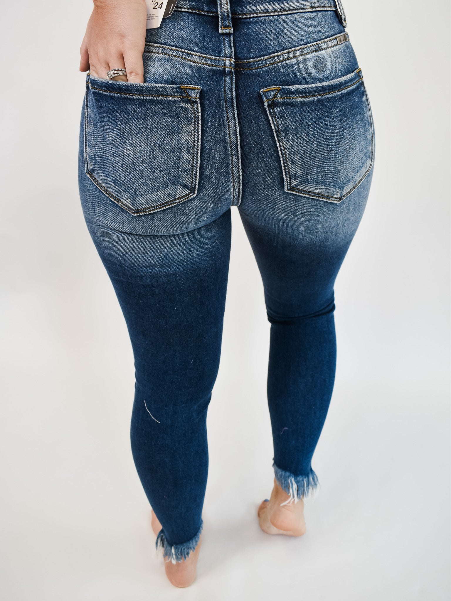 Elevate your style with KanCan Gemma Ankle Skinny Jeans. These high rise jeans hug your figure in all the right places, creating a flattering silhouette. The ankle length adds a modern touch, perfect for showing off your favorite shoes. Upgrade your denim game with these must-have jeans!