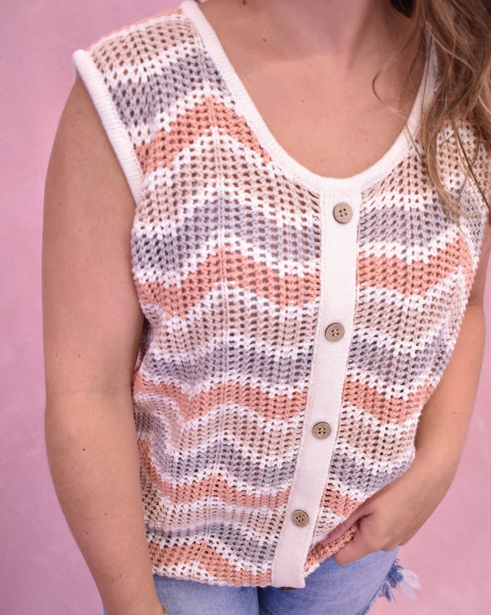 Elevate your style with the Morning Sun Crochet Top, crafted from delicate crochet fabric for a unique texture and look. Featuring a flattering scoop neck and sleeveless design, it offers a relaxed fit that keeps you comfortable all day. The subtle fake placket detail adds a touch of sophistication, making this top perfect for both casual and dressier occasions. Add effortless charm to your wardrobe with this versatile piece.
