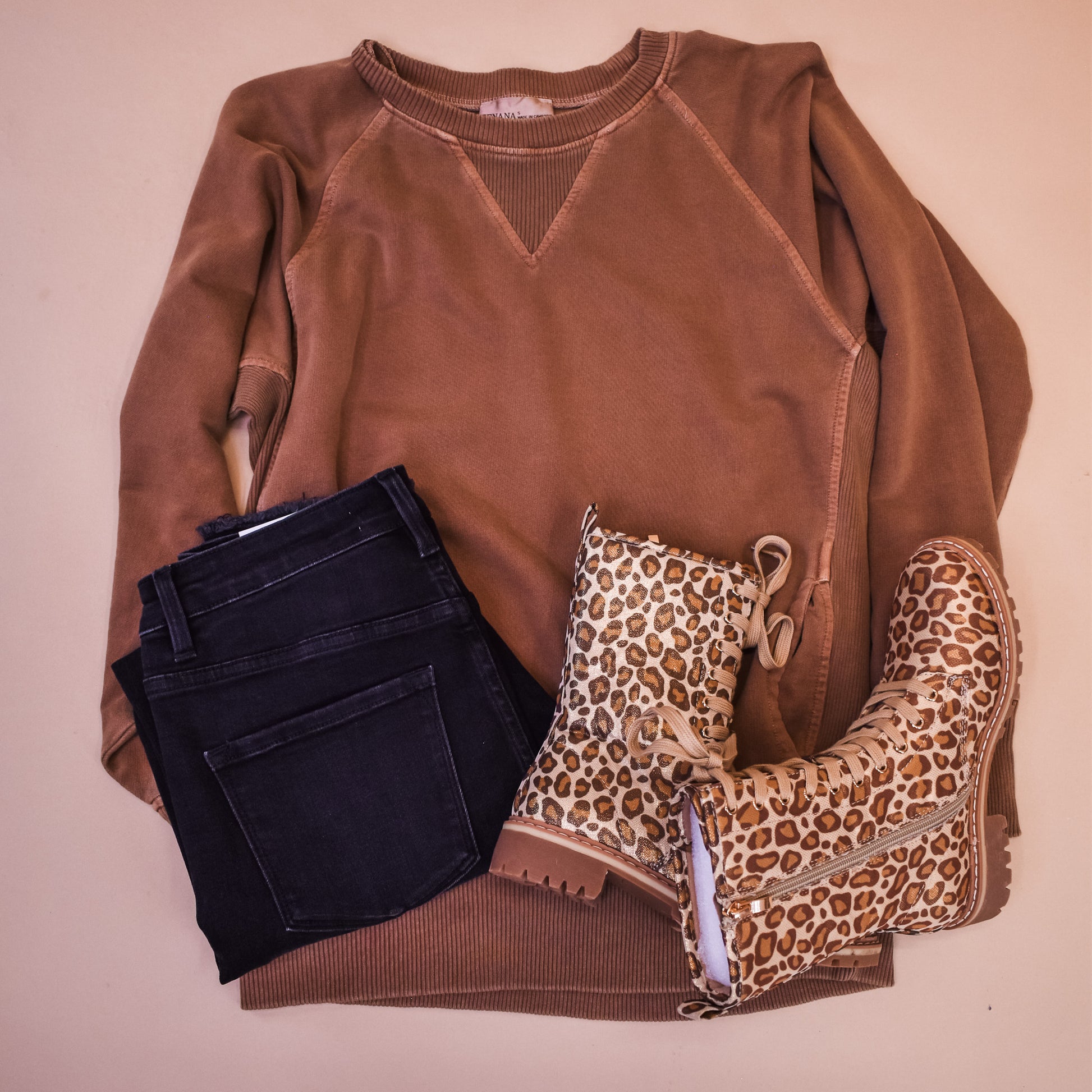 Don't get stuck in a style rut, grab our Moving On Pigment Dyed Pullover! This french terry pullover features convenient pockets and ribbed details for added style and comfort. Plus, the unique pigment dye adds a touch of color and character to your wardrobe.