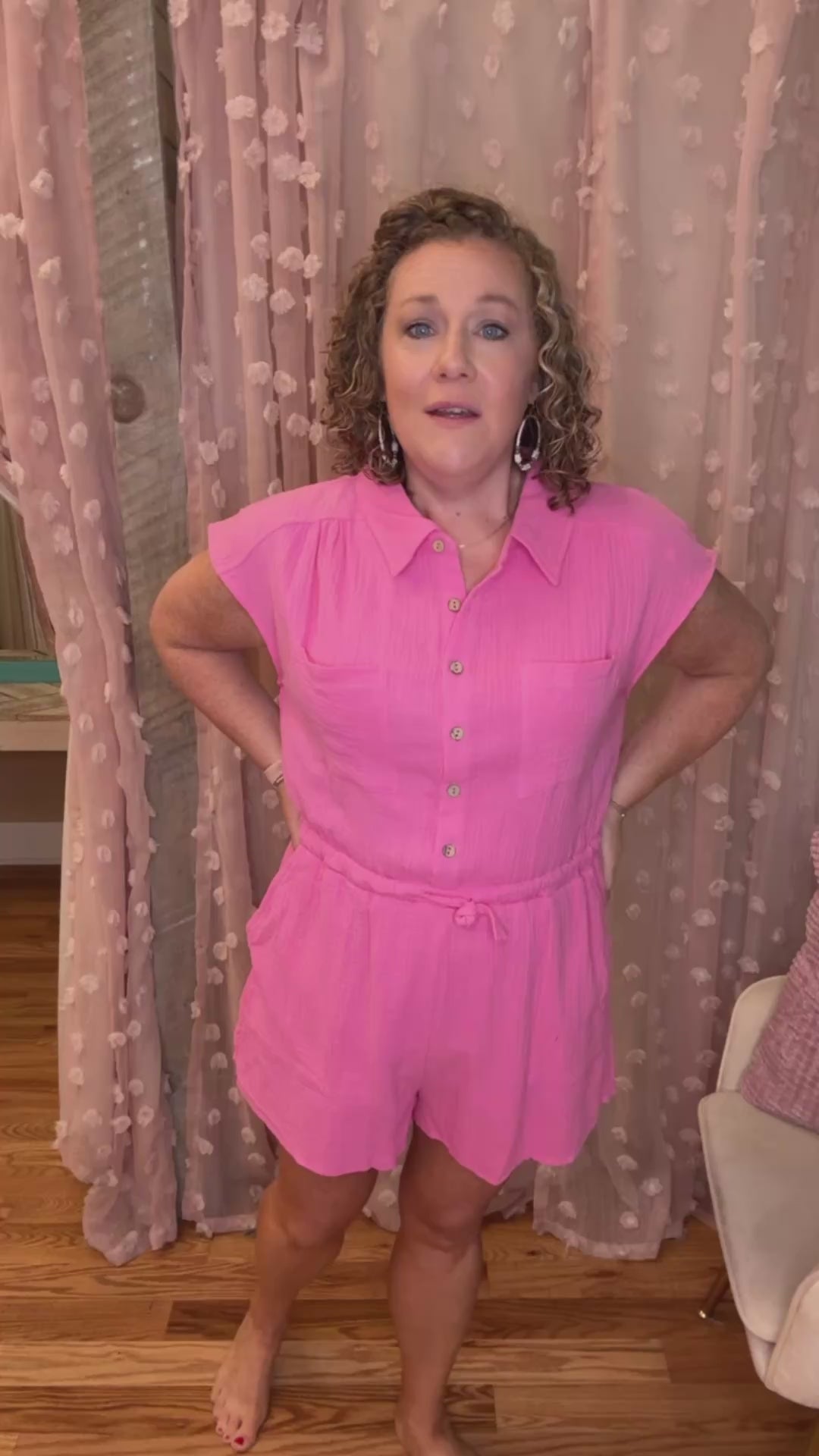 Experience ultimate comfort and style with our Path to Happiness Button Down Romper. Made with soft and breathable cotton gauze fabric, this romper features a flattering button down design, shirring details, waist tie, and convenient side pockets. With a relaxed fit and drop shoulder, this romper is perfect for any occasion.