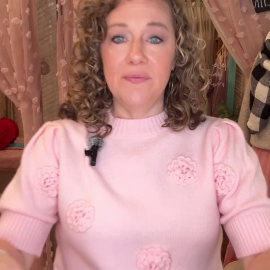 Indulge in feminine charm with our Pulling Heartstrings Sweater Top. Delicately detailed with raised flower accents and flirty puff sleeves, this sweater top is the perfect addition to your wardrobe. Elevate any outfit with its elegant touch.