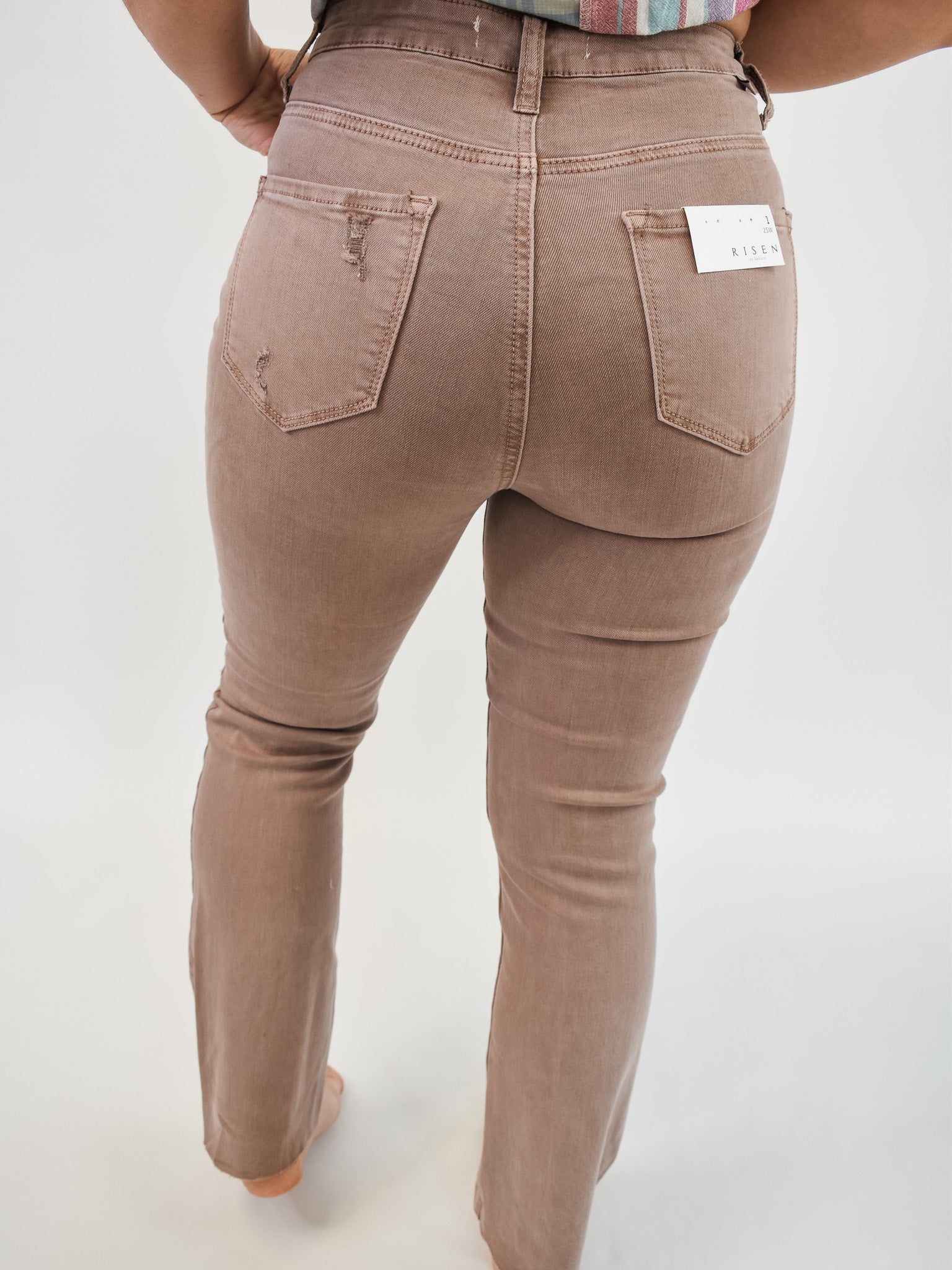 Elevate your style with Risen High Rise Crop Straight Jeans. The perfect combination of high rise and crop length, these jeans elongate your silhouette and give a modern touch. Made with button down denim, these jeans are a must-have for any fashion-forward individual.