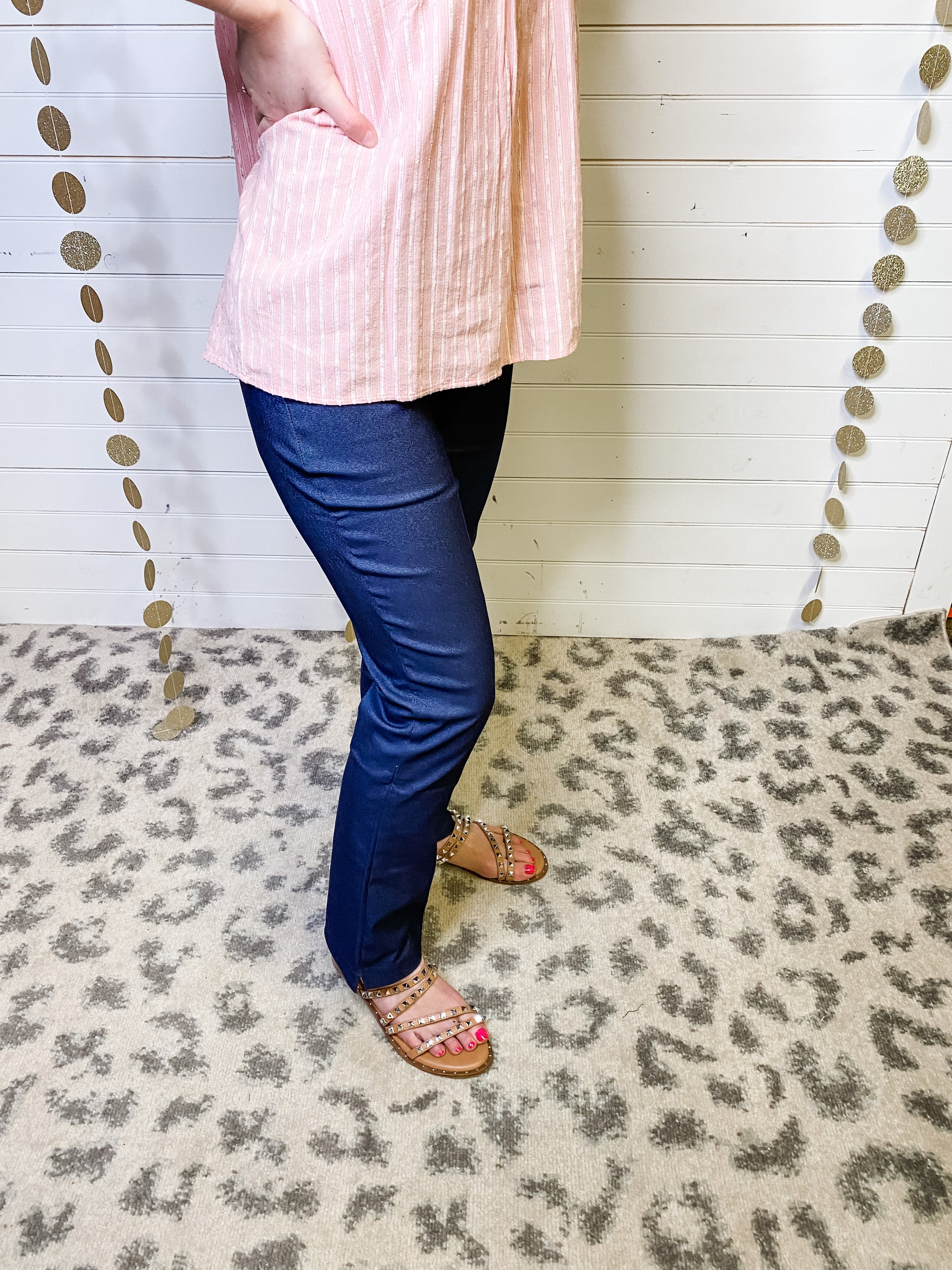 These are our Straight Leg Millennium Pants. They are a high waisted full panel trouser style pant. They have a super comfortable stretch style fit.