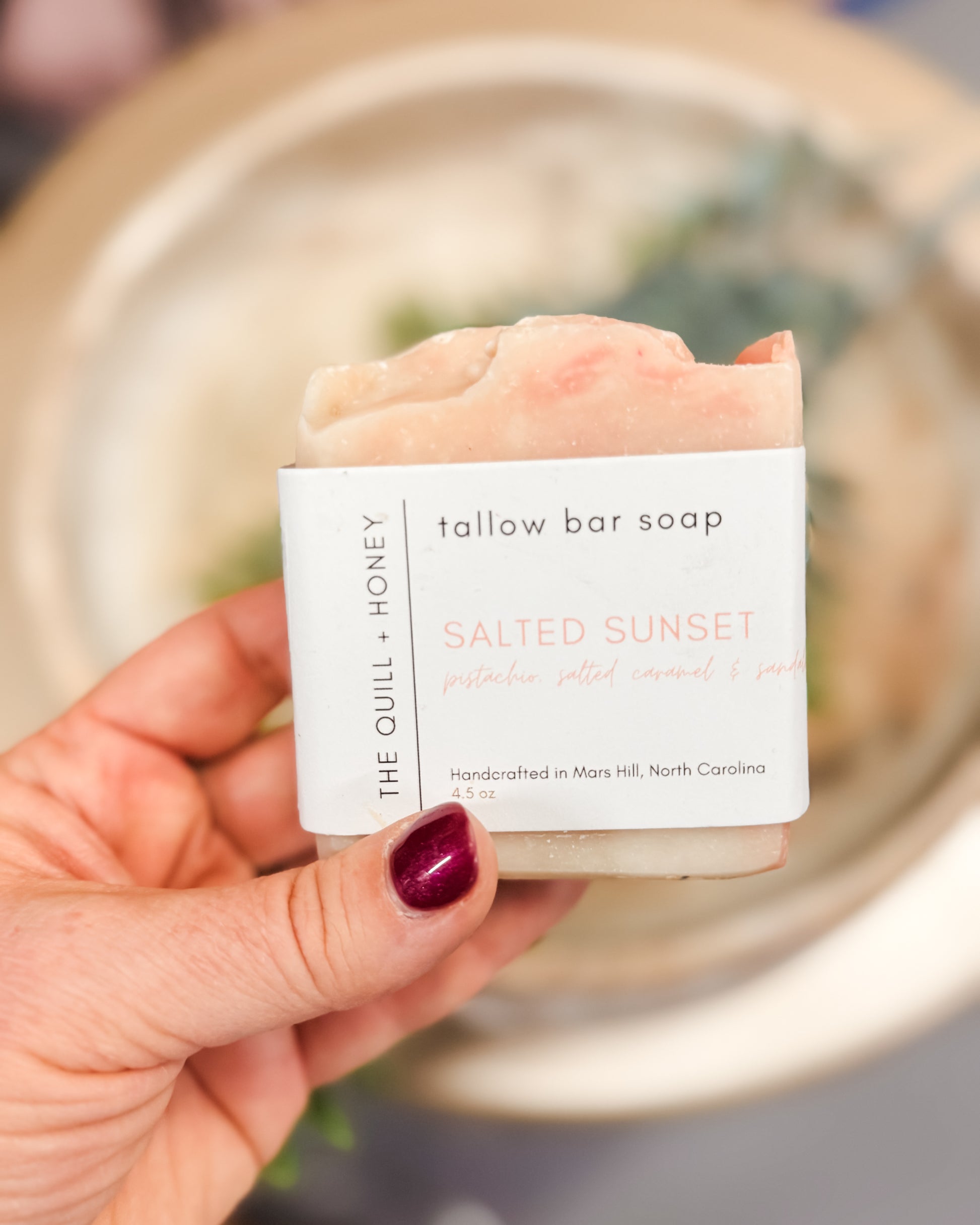Introducing The Quill and Honey Bar Soap—a delightfully crafted bar that brings a touch of Southern charm to your daily routine. Handmade in small batches, this luxurious soap combines nourishing oils, rich butters, and traditional beef tallow to create an indulgent lather that transforms your shower into a spa experience. Every bar is infused with a long-lasting scent that lingers beautifully on your skin, while natural additives add just the right splash of color and personality. No fuss, no synthetic nonsense—just pure, honest soap made the way it should be. Treat yourself to the simple luxury of artisanal craftsmanship with every wash.