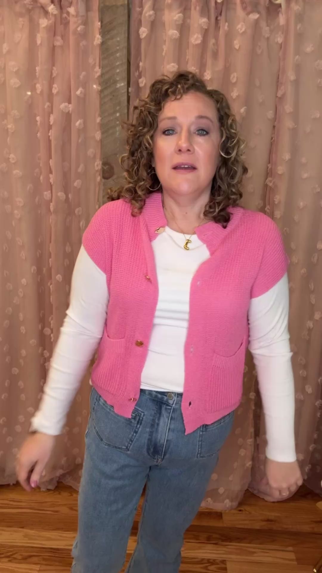 Jessica is wearing a Medium.